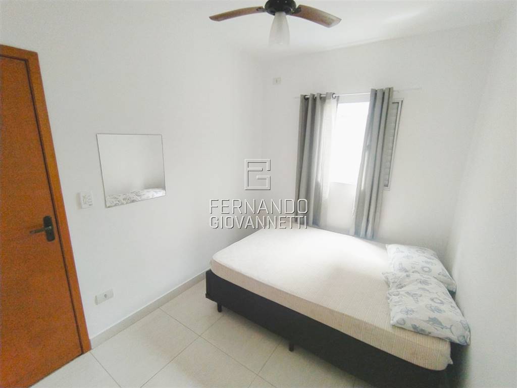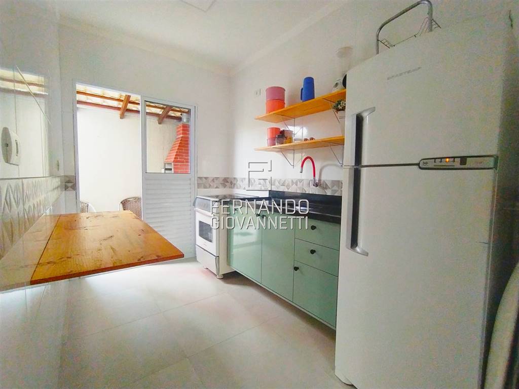 Casa em condomínio térrea, com quintal, área de serviço coberta e churrasqueira, dois quartos bem ventilados e ótima iluminação natural, cozinha americana, 1 vaga de garagem, totalmente mobiliado. Apenas a dois quarteirões de distância da praia.